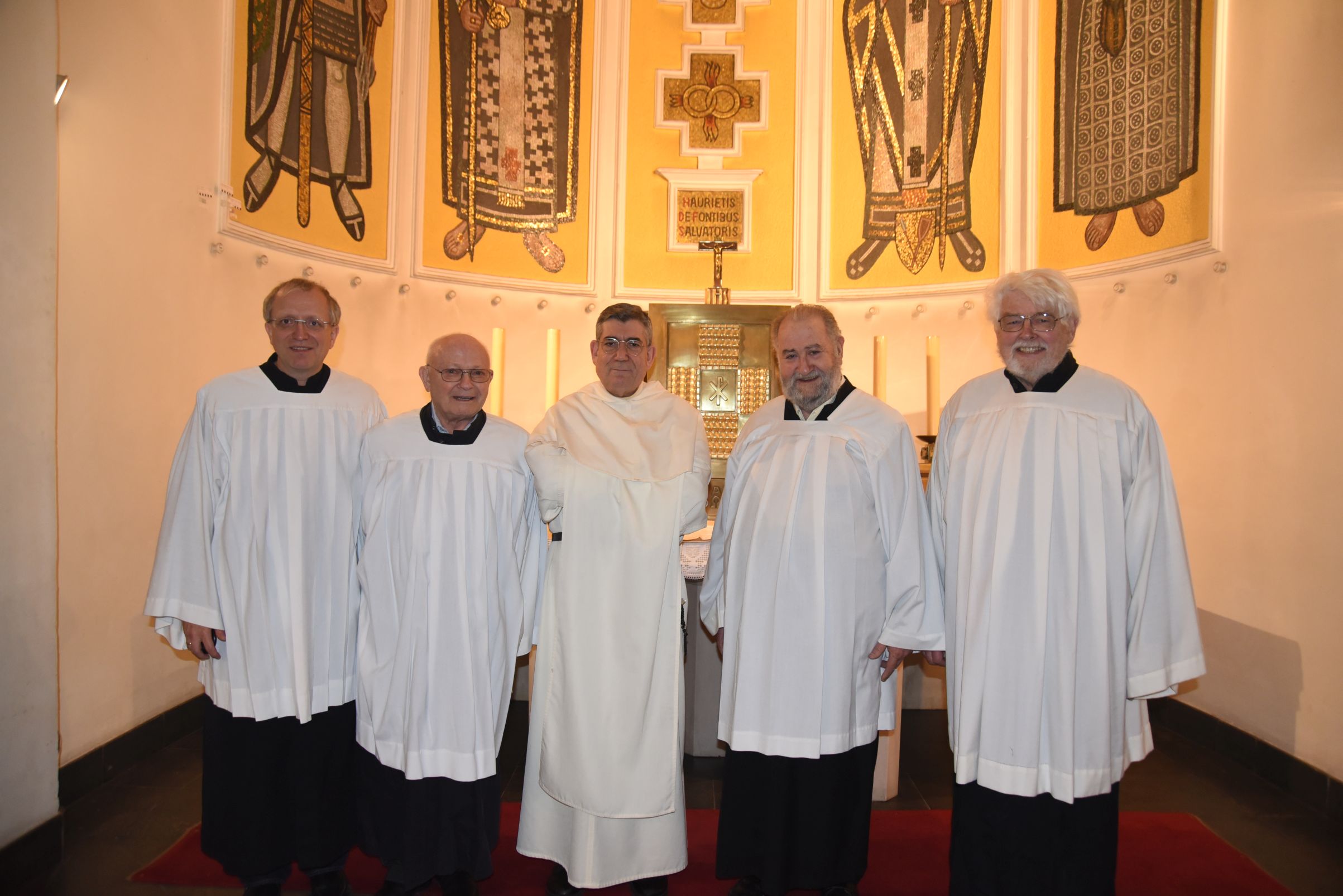 Die Schola mit unseren Pater Alanus (mitte) und unseren Organisten Herrn Bernd Lohe † (rechts) |