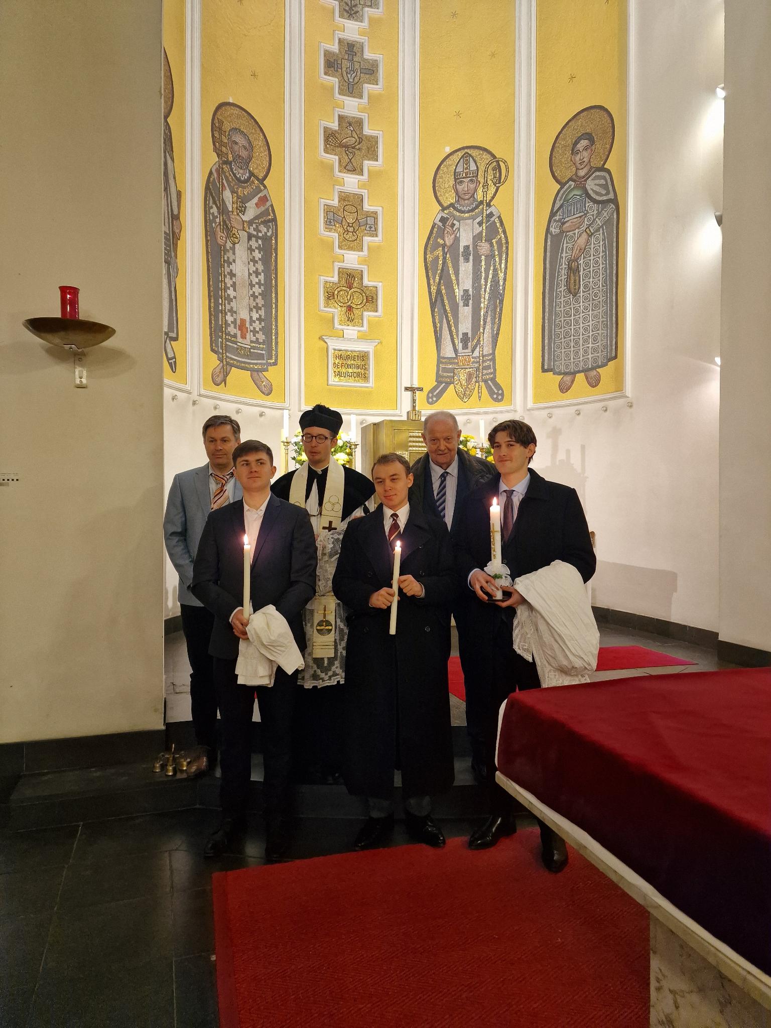 Heute wurde in unserer Gemeinde gefeiert. Drei junge Männer konnten wir in unserer Kirche aufnehmen. Hier sehen Sie sie mit Pater Francesco und ihren Paten. Schließen wir sie in unsere Gebete mit ein. Deo Gratias. 23.11.2025 |